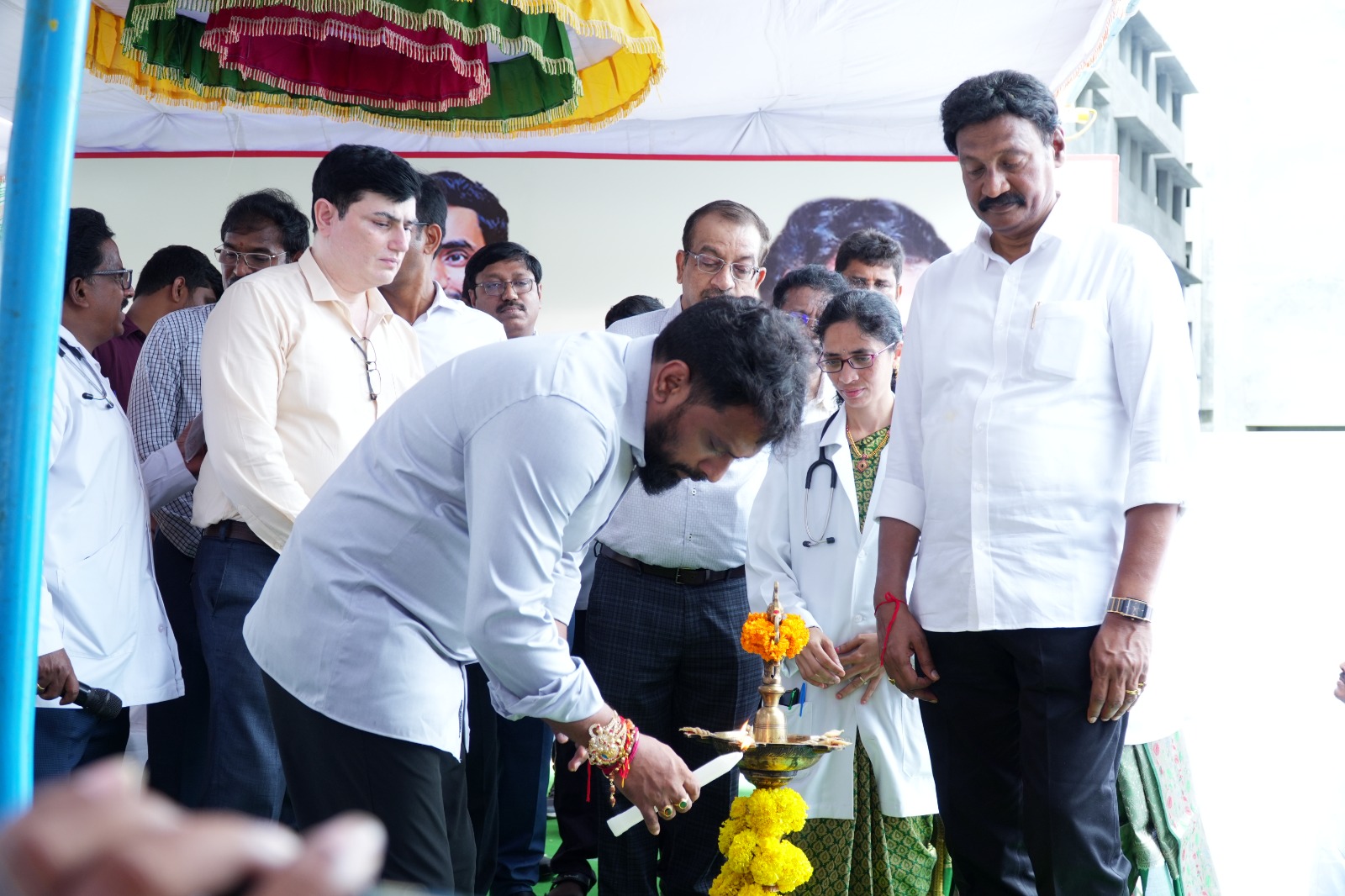 Photo Gallery - Inauguration of 30 bedded semi-permanent structure at ESI Hospital, Gunadala, Vijayawada by Sh. Vasamsetti Subhash, Minister of LE, Govt. of A.P